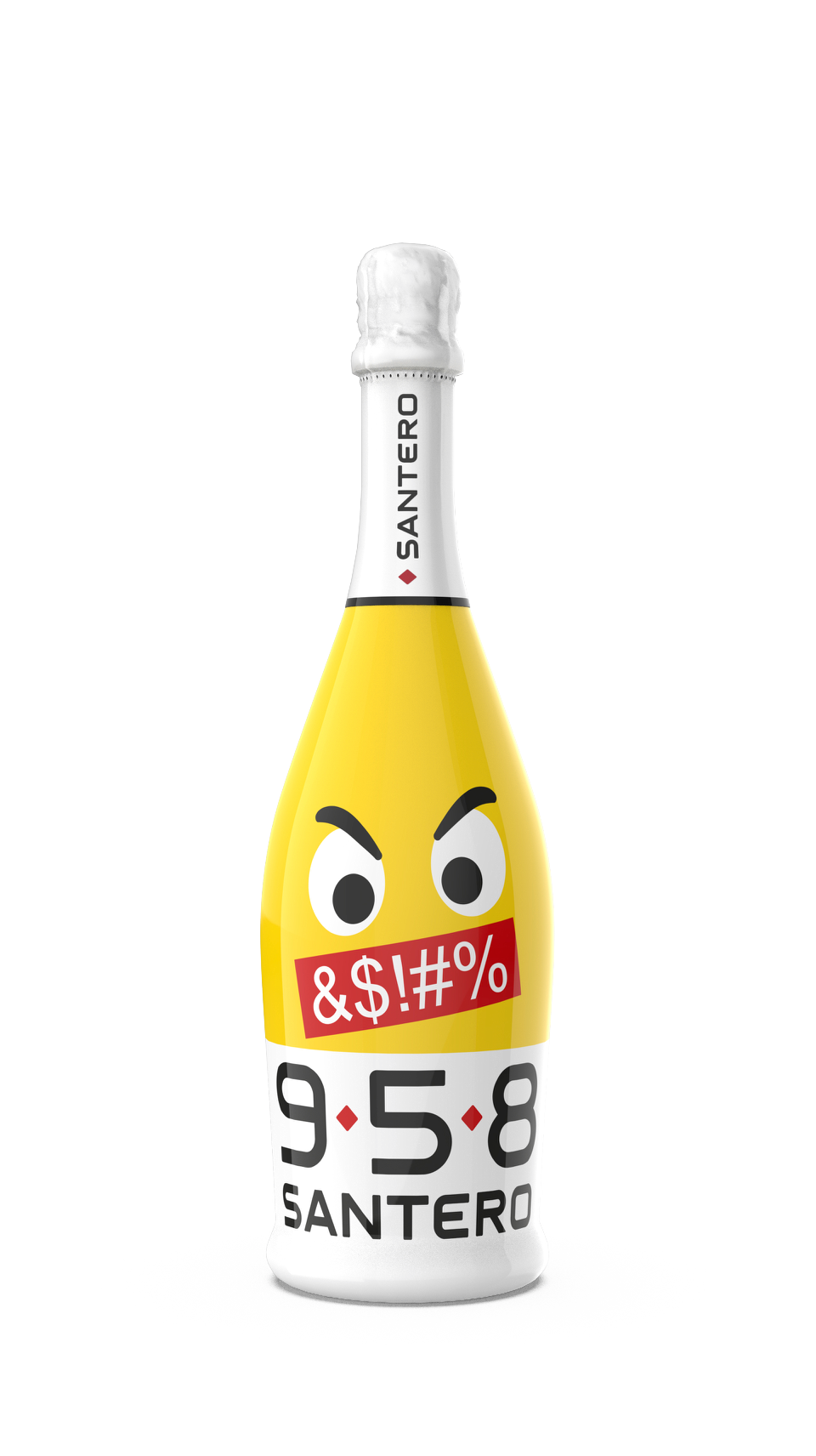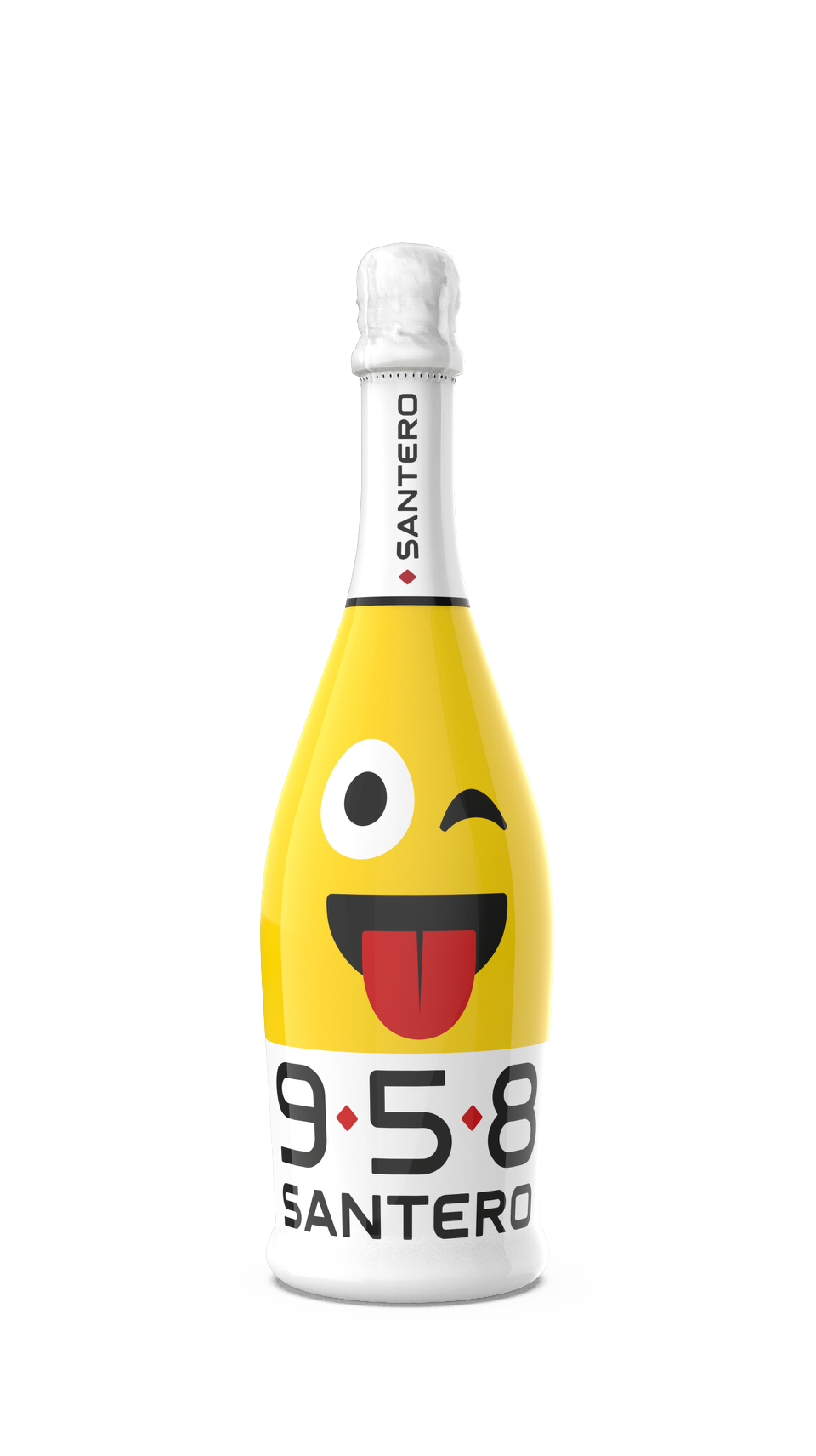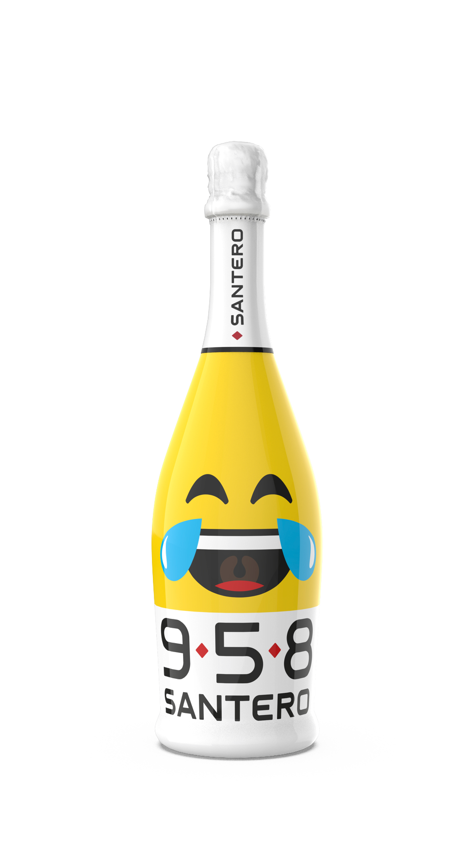 De nieuwe Emoji Collectie is uit: 6 flesjes van 958 Santero Extra Dry van 750 ml